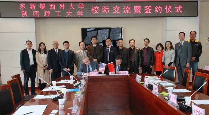 上午,陕西理工大学与东新墨西哥大学校际交流会暨签约仪式在学校第二会议室举行。校长张社民、副校长王磊、国际合作与交流处处长周建国,以及相关学院负责人参加了会议。会议由王磊主持。